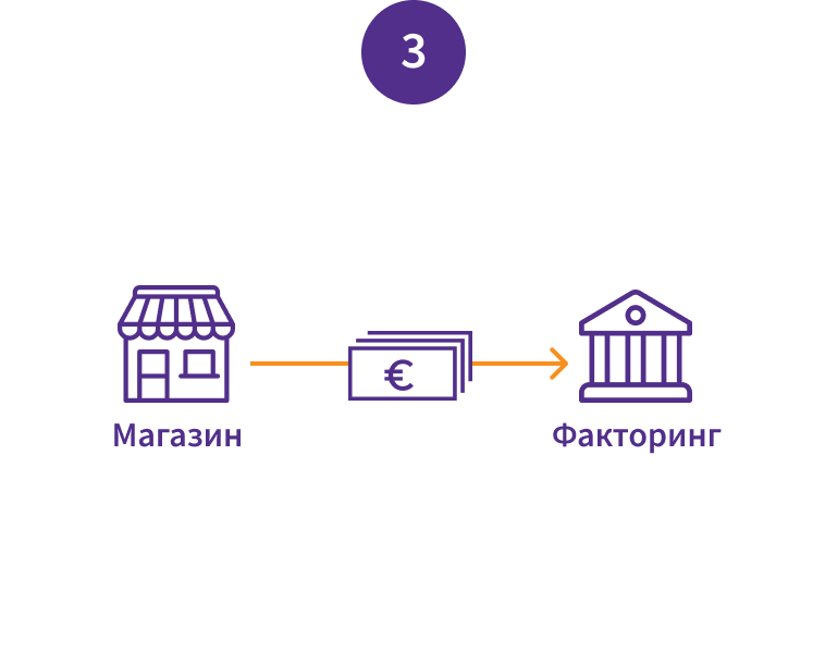 Магазин: Покупатель, который делает запрос факторингу, кредитор