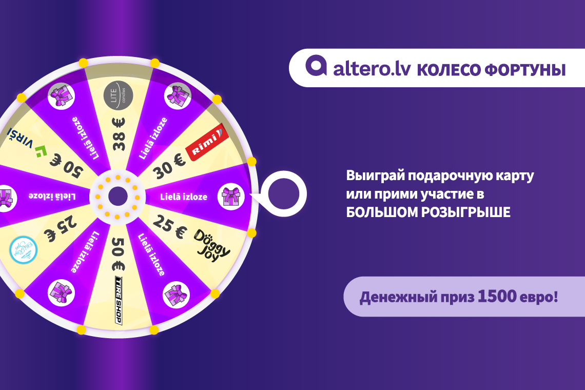 В рамках своего 6-летия Altero предлагает вам повернуть Колесо Фортуны, выиграть подарочную карту или принять участие в большом розыгрыше на 1500 евро!